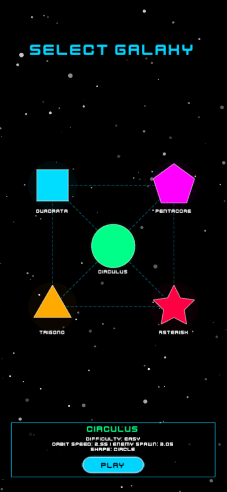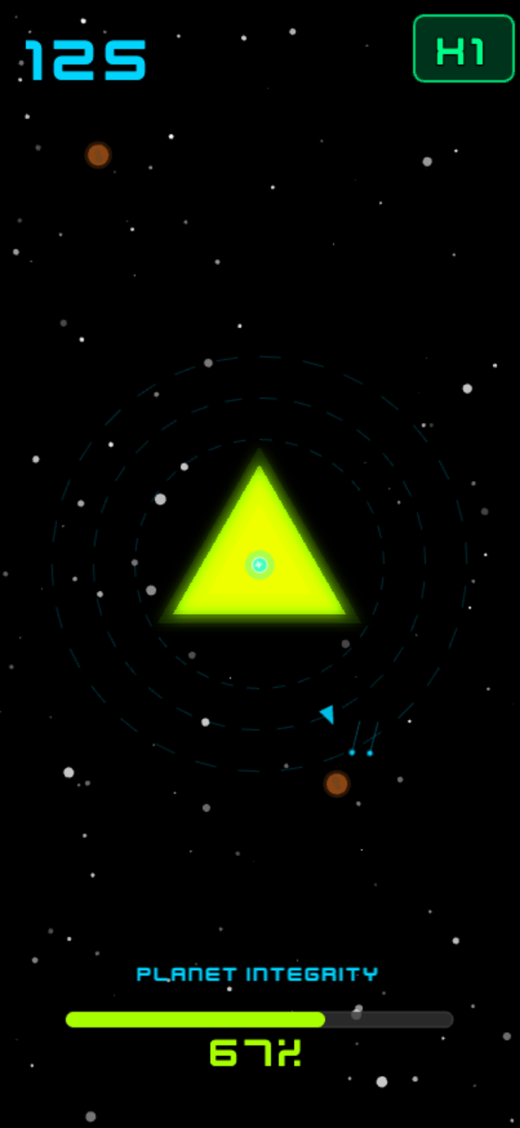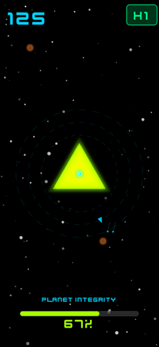 A simple, endless single-tap shoot'm'up-like. Protect your shape from the attacking geometry forces, heal up and get different power-ups.